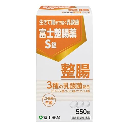 | 株式会社富士薬品専売 富士整腸薬S錠 (米田薬品工業) | 360錠/550錠 | 360錠:1,408円 550錠:1,958円 | 約33円 | ビフィズス菌:20mg ラクトミン(フェカリス菌):20mg ラクトミン(アシドフィルス菌):20mg |