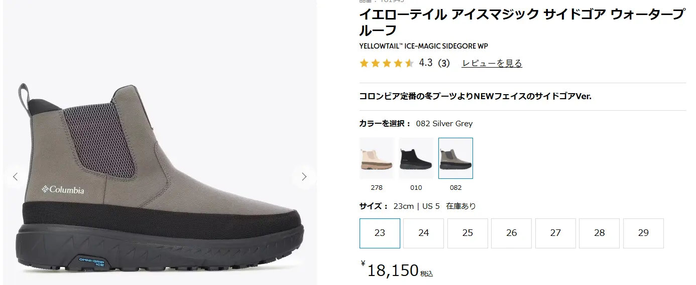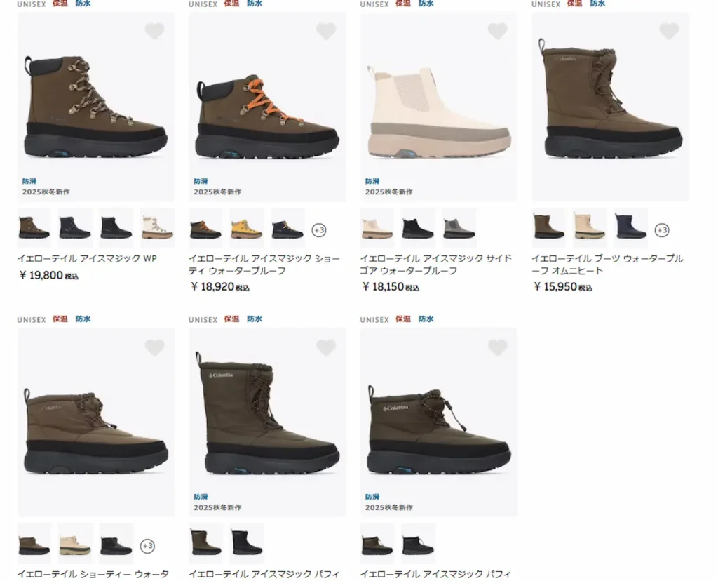 イエローテイルアイスマジックは1万5千円〜2万円で購入できるので、冬用ブーツとしてはかなり手に取りやすい価格帯となっています。